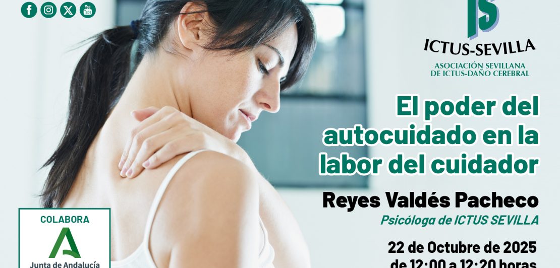 Cuidar también implica cuidarse. El próximo 22 de octubre de 2025, de 12:00 a 12:20 h, te invitamos a seguir en directo la charla “El poder del autocuidado en la labor del cuidador”, impartida por Reyes Valdés Pacheco, psicóloga de ICTUS SEVILLA.