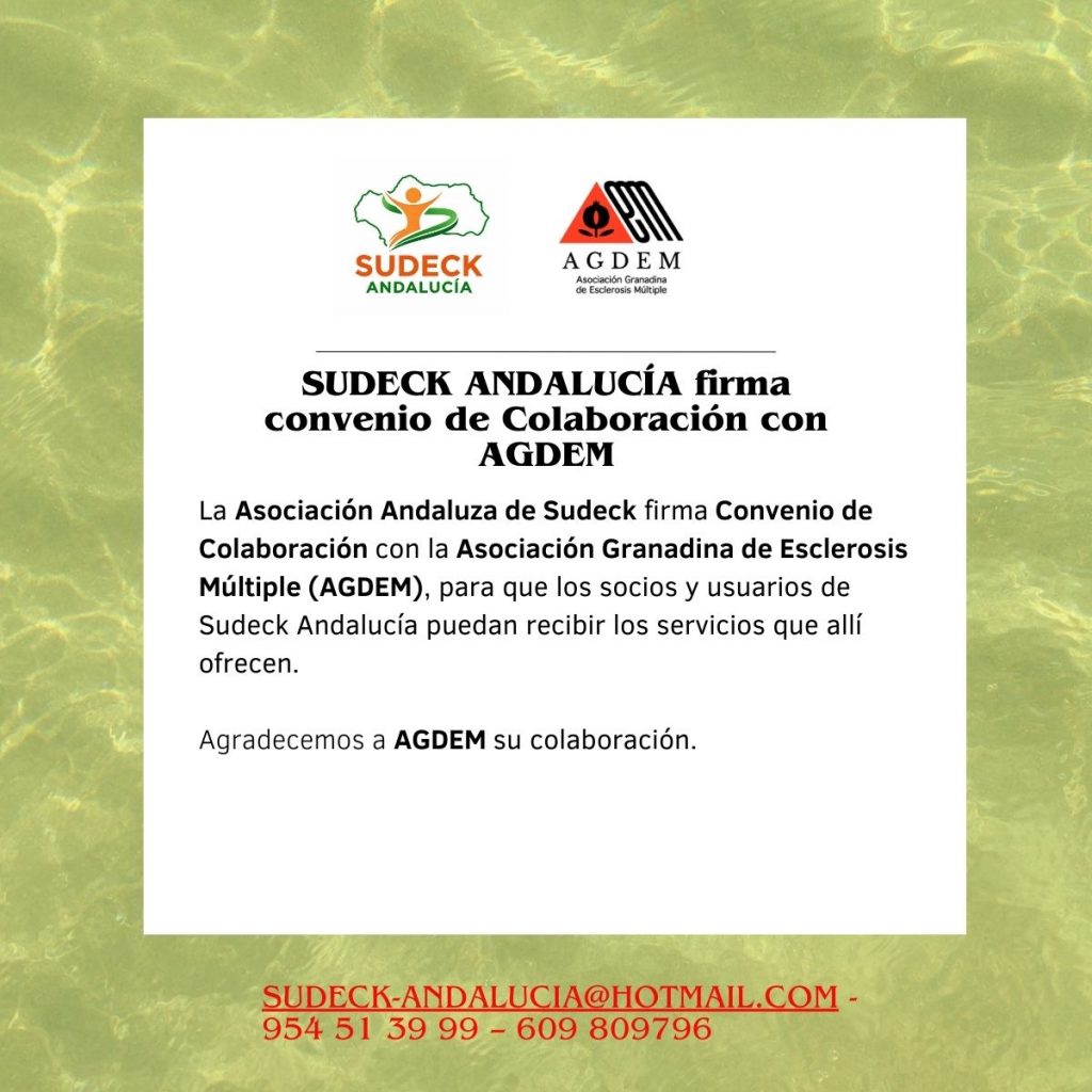 La firma de este Convenio ayuda a que los socios y usuarios de Sudeck Andalucía puedan recibir los servicios que allí ofrecen.