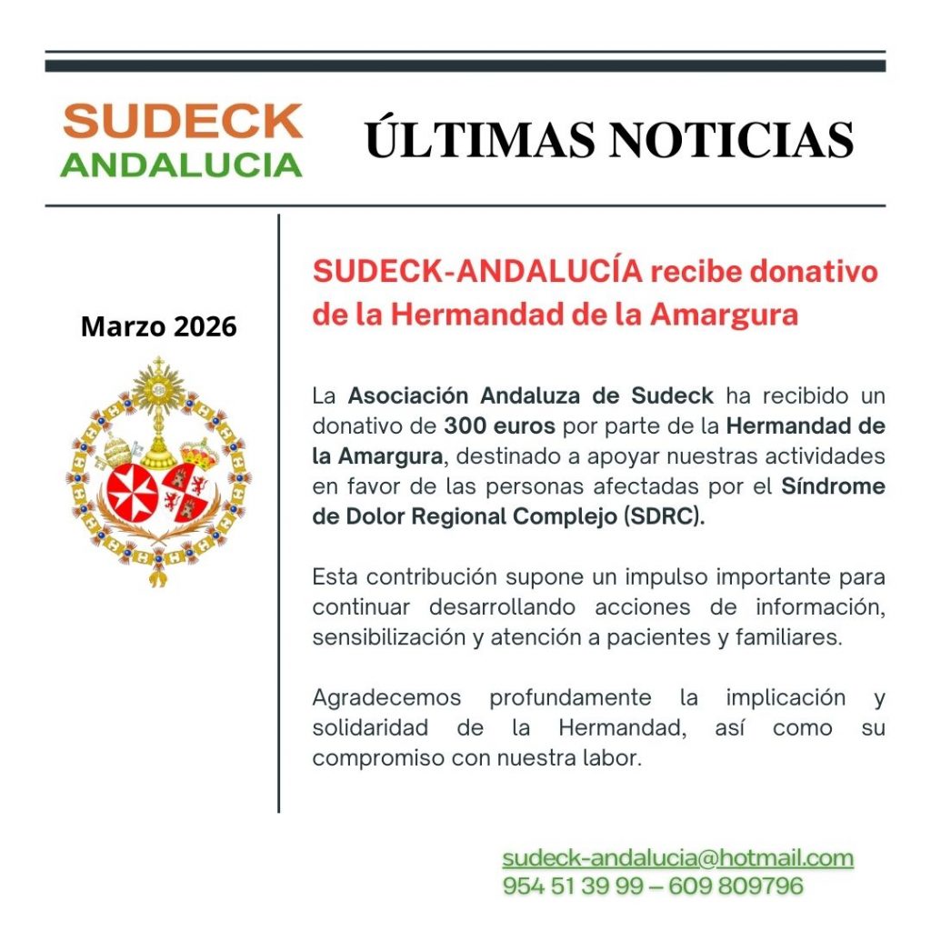 La Asociación Andaluza de Sudeck ha recibido un donativo de 300 euros por parte de la Hermandad de la Amargura.