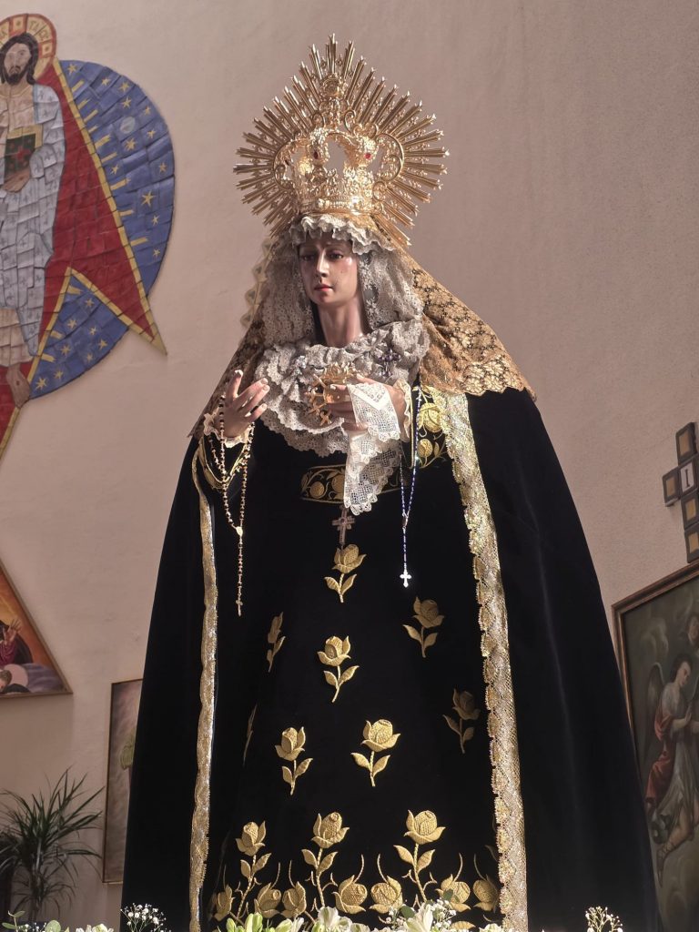 Para esta ocasión tan especial, la imagen de la Virgen ha sido vestida por D. Jesús Tamayo, quien se ha desplazado expresamente desde Jerez de la Frontera para este acontecimiento, aportando su dedicación y cuidado en el atavío de la imagen.